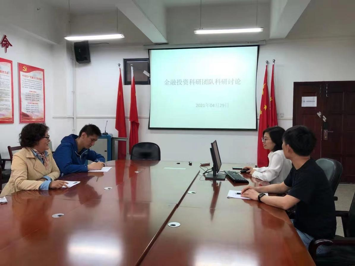 4月29日下午 ,太阳集团tyc33455官网金融投资科研团队成员在崇德楼315左召开学术讨论会议,此次会议由王滨教授、郭雪博士及吴磊博士汇报个人近期科研成果及进展。