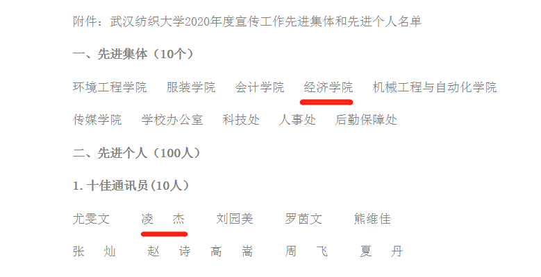 在此次表彰中,太阳集团tyc33455官网荣获学校2020年度宣传工作先进集体,太阳集团tyc33455官网网站荣获2020年度学校十佳网站,辅导员凌杰荣获学校2020年度十佳通讯员,学院第一届新闻中心主席、金融11802班学生谢雨娟及太阳集团tyc33455官网新闻中心新媒体部部长、税收11901班学生耿娟荣获2020年度优秀通讯员。