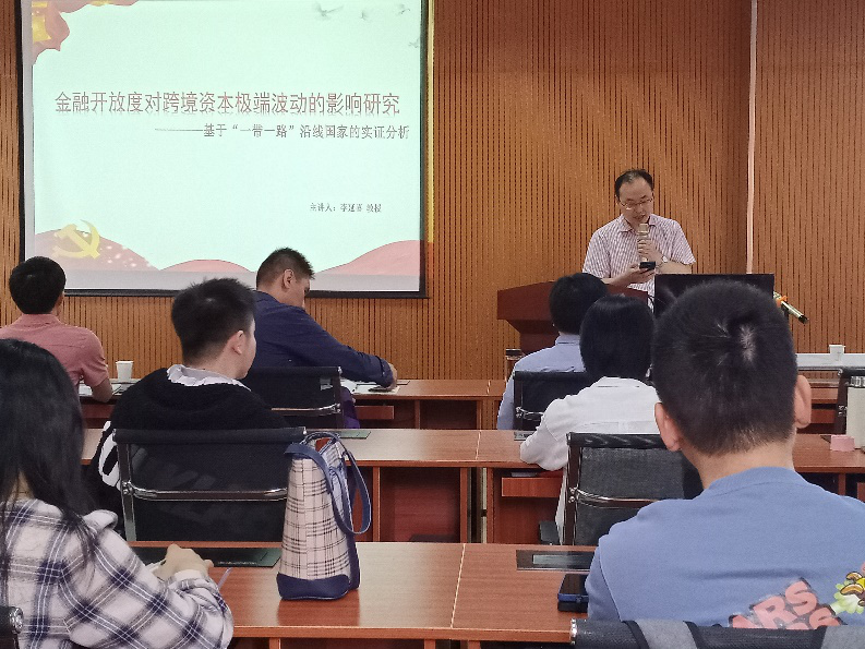 5月16日上午,大连理工大学经济管理学院博士生导师李延喜教授应邀在我校7号楼308会议室为太阳集团tyc33455官网师生带来了主题为《金融开放度对跨境资本极端波动的影响研究——基于“一带一路”沿线国家的实证分析》学术讲座。太阳集团tyc33455官网领导班子、骨干教师和研究生聆听了讲座。会议由段丁强院长主持。