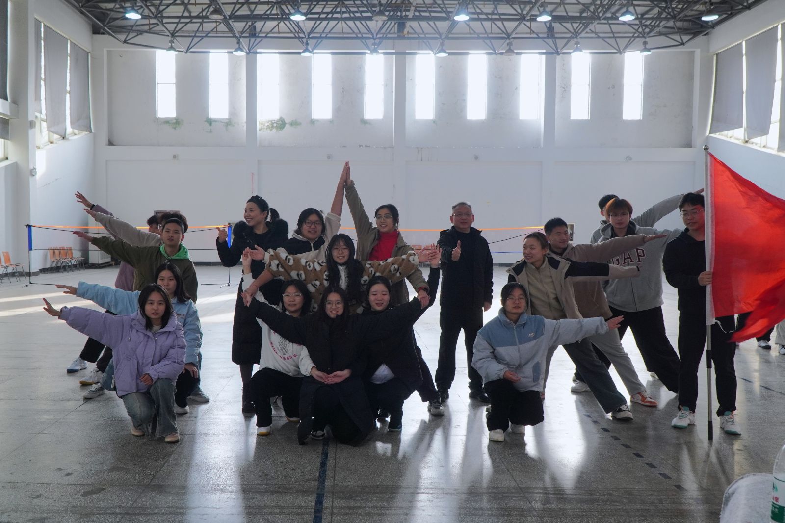 趣味羽毛球比赛按照接力赛、混合团体赛、团体表演赛三个环节逐次进行。首场竞技是以接球数量决定胜负的接力赛。双方队员在场上你争我夺,各团队成员间的紧密配合充分展现了集体主义精神。紧接着是混合团队赛,罗锦银与同学们并肩作战,共同参与双打比赛,迎接激烈的较量。羽毛球在空中飞舞,划出一道道优美的弧线。比赛过程中,罗锦银不时地给予同学们鼓励和指导,分享打球技巧和经验,让同学们在紧张的比赛氛围中感受到关怀。这一互动不仅加深了师生间的交流,也传递了浓厚的温情。在团体表演赛中,各小组纷纷派出优秀的羽毛球选手进行激烈双打对决,精彩的发球、巧妙的接球引发了现场的阵阵欢呼,将整场比赛推向高潮。