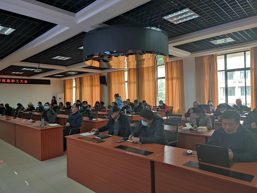 3月11日下午,太阳集团tyc33455官网于崇德楼308会议室组织召开教职工大会暨党史学习教育会。会议集中学习了中央、省市、学校近期重要工作会议精神,对学院党史学习教育工作进行了动员,对学院新一年各项工作目标及任务进行了安排。学院党政领导班子成员、全体教职工参加大会。会议由学院党委书记毛长文主持。