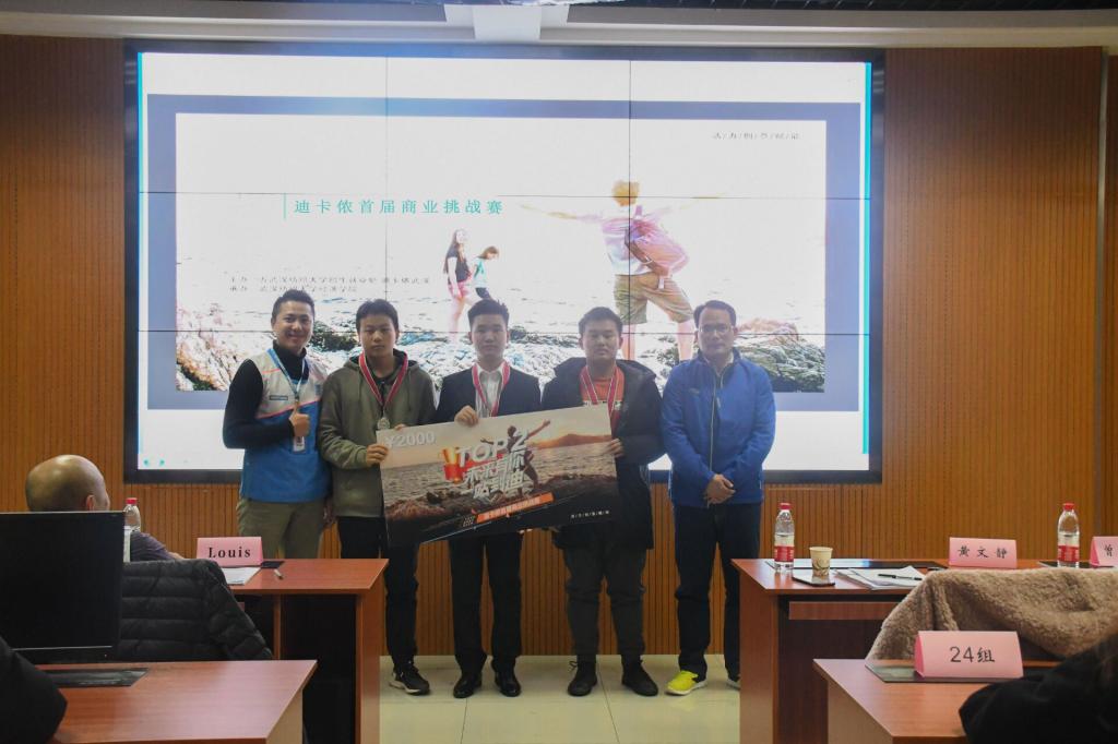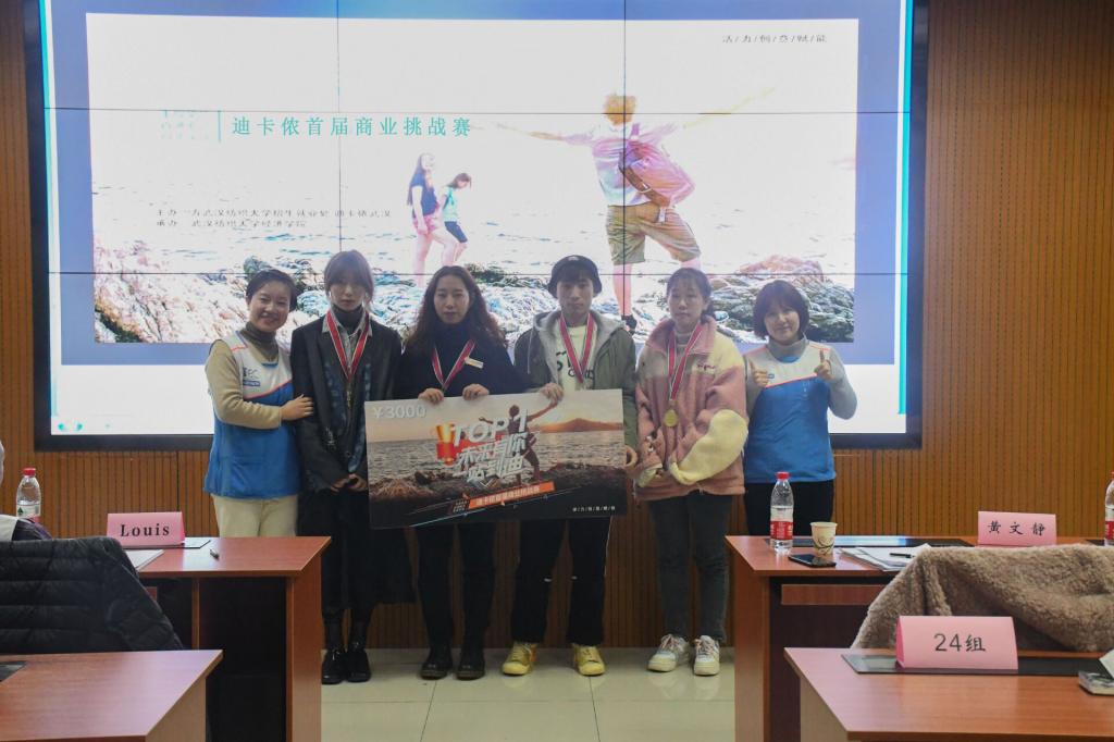 本次大赛在评委与获胜队伍的合影留念中落下帷幕。据悉,迪卡侬首届商业挑战赛吸引了我校各个学院的37支团队、124名大学生参加,历经初赛、复赛、决赛,耗时1个多月的时间,期间参赛团队还走访了迪卡侬武汉公司进行学习,不仅提高了大学生的运动和健康意识,同时也促进了我校大学生的团队合作能力、沟通能力,使参赛学生受益匪浅。
