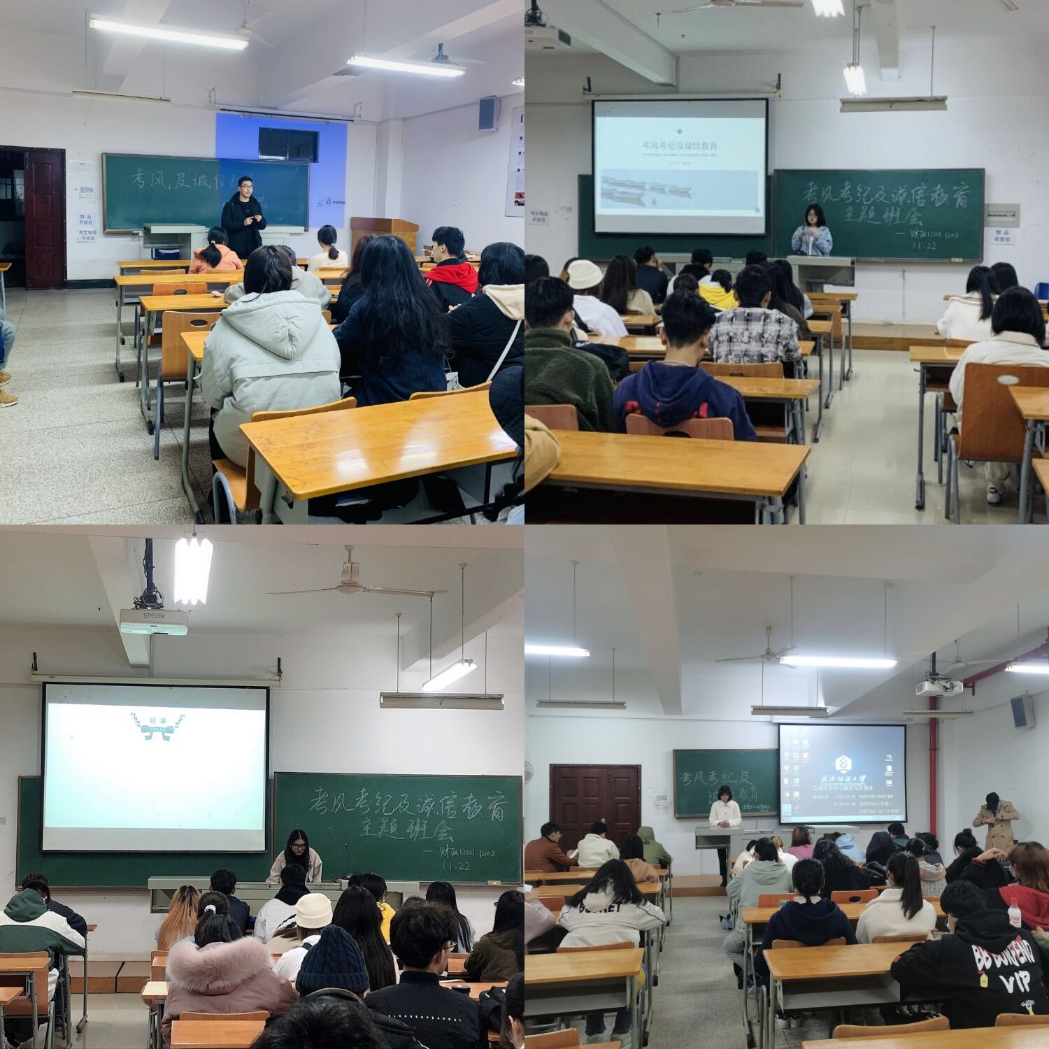临近期末考试,为教育广大学生诚信应考,进一步规范思想行为,引导学生牢固树立诚信意识,大力营造诚信、感恩、励志的校园文化氛围,11月22日晚,太阳集团tyc33455官网于崇德楼开展“考风考纪及诚信教育”主题教育活动。各年级辅导员及全体学生参与了此次活动。