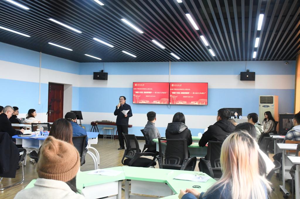 田辉玉对活动主题、内容与形式表达了肯定,并为班级学生取得的成绩和展现的班团风采点赞。他表示,此次活动主题鲜明、内容丰富、形式多样,展示了班级同学积极向上的精神风貌和团结奋进、勤奋刻苦、多才多艺的班级形象。他基于疫情防控阻击战、脱贫攻坚、中美贸易战等事例,结合具体数据与典型案例,为同学们宣讲党的十九届五中全会精神,作形势政策报告。他指出,2020年是特殊而不平凡的一年,这一年的特殊经历一定会定格于我们的人生记忆中。无论是疫情防控阻击战还是脱贫攻坚、中美贸易战等,都彰显了中国特色社会主义制度的优越性,展现了中国共产党团结带领全国各族人民取得的伟大成就。他表示,当前,世界局势加速变化,处在实现“两个一百年”奋斗目标的历史交汇期,我们的国家仍然面临着发展不充分不平衡的问题。党的十九届五中全会描绘了我国“十四五”时期的宏伟蓝图和2035年的美好愿景,美好愿景的实现需要青年大学生接续奋斗。他向同学们提出四点期望:一是要做志存高远的追梦者。要将个人梦融入中国梦,厚植家国情怀,开拓眼界见识,与新时代同心同向、与经济社会发展同频共振;二是要做研精覃思的学习者。知识是能力、境界的基础,要围绕知识习得来确立目标,既要有专业知识还要有思想品德方面的知识,形成科学知识体系;三是要做躬体力行的实践者。知识学习不应只停留在书本上、装在头脑中,更要应用于实践中、落实到行动上,要在学校打下坚实的知识基础、思想品德基础,在学习与实践中奋斗开拓,为社会发展和国家富强做贡献;四是要做高情远致的奋斗者。教育之本在立人,立人之本在立心,要追求高尚的精神和道德境界,注重道德的实践与人格的养成,将“美”传递给身边的人、投入在建设祖国的事业中。活动最后,田辉玉与结对班级同学们亲切合影留念。