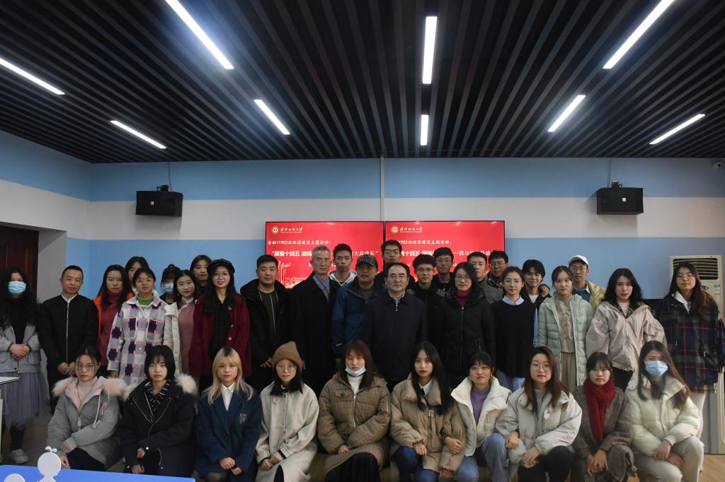 12月14日下午,校党委书记田辉玉深入太阳集团tyc33455官网,参加结对班级金融11902班“展望十四五 激扬青春梦——我与纺大共成长”班团建设主题活动并为学生作形势政策报告,走进结对宿舍10B203看望宿舍学生,并与结对学生朱杨紫兰交流谈心。学校办、学工部、校团委、太阳集团tyc33455官网相关负责人参加有关活动。