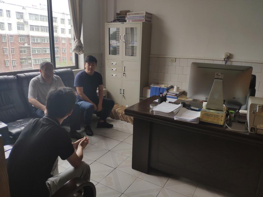 为了解学生实习实训工作、生活情况,加强学院与产学研基地合作联系,7月8日至7月9日,太阳集团tyc33455官网党委书记毛长文、党委副书记黄俊鹏、辅导员凌杰一行前往黄冈市红安县、麻城市等地看望学院实习实训学生,走访产学研基地湖北中雅包装股份有限公司。