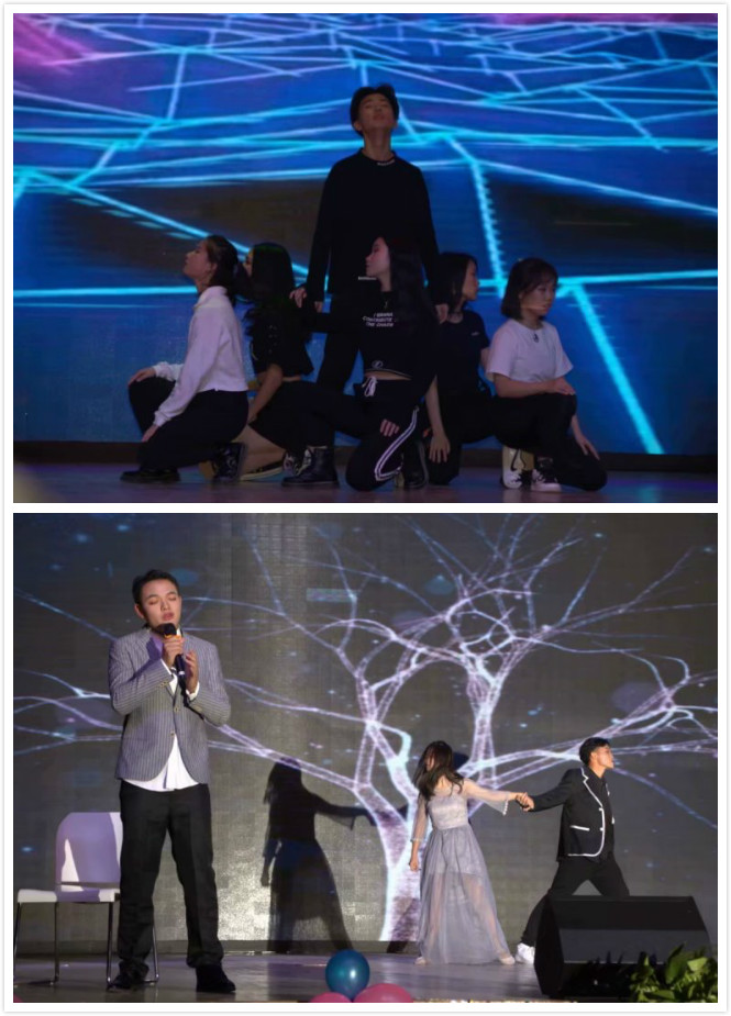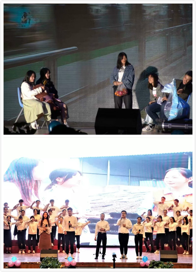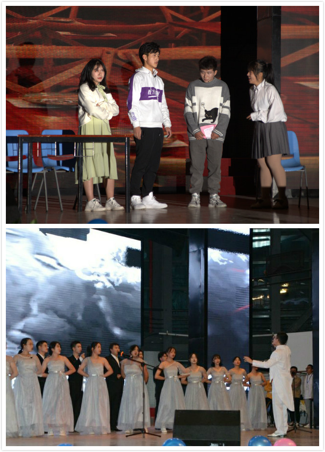 晚会中,太阳集团tyc33455官网合唱团带来歌曲《我和我的祖国》以及《我爱你中国》。随着指挥员舞动着节拍,合唱团同学歌声慷慨激昂。“我爱你中国,亲爱的母亲;我为你流泪,也为你自豪”歌声中流露出的爱国情怀渐渐感染到在场观众,现场观众齐声高歌,致敬伟大的祖国。由学院学生进行排练的拉丁爵士舞蹈《FIRE》、小品《转身》、歌曲《从前慢》《yellow》《背对背拥抱》、歌舞剧《等你下课》、心理剧《你的糖》等节目精彩纷呈,处处呈现着经院学子积极向上的精神面貌;由学院教师带来的歌曲串烧《歌声飞过十年》、诗朗诵《祝福你,祖国》则展现了学院师生团结一心、其乐融融的氛围。晚会结尾学校2019-2020学年“十佳班团”一等奖获得班级金融11703班进行了以《我们都是追梦人》为主题的班级风采展示。
