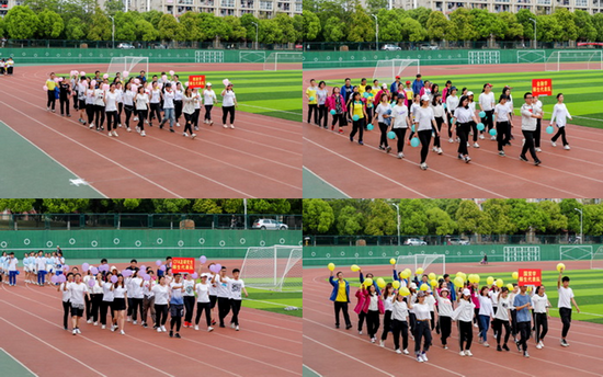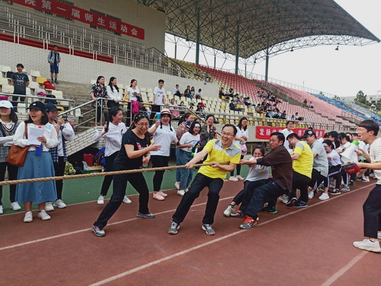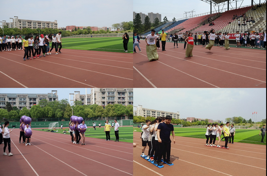 学院书记毛长文宣布太阳集团tyc33455官网第一届师生运动会开幕后,比赛正式开始。本次运动会分为教师团体项目、学生团体项目、师生混合团体项目以及个人趣味项目。在八人九足、协力竞走、袋鼠跳和同心协力项目中,师生齐心协力,高度配合,共同完成比赛;在教师50米和学生4*100米迎面接力中,师生们在跑道上奋力奔跑,勇于拼搏,在最后的师生拔河比赛中,参赛师生拼尽全力,双方力量互相抗衡,现场同学也高喊“加油、加油”,为代表队呐喊助威,师生们热情高涨,一片欢声笑语。
