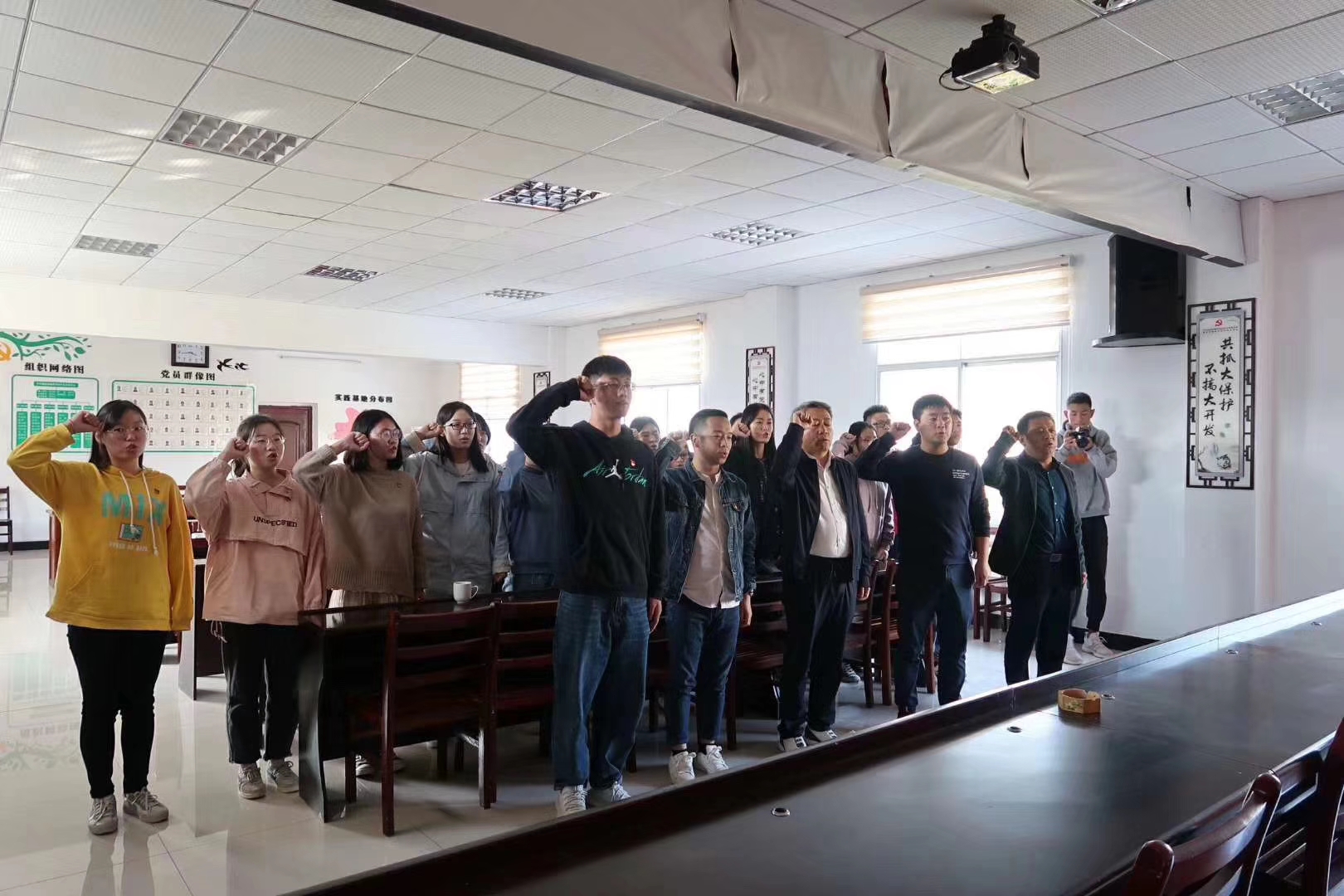 在燕窝垸村党员群众服务中心三楼会议室,学院组织开展了“带着初心与使命——走进扶贫试点村,感悟祖国大发展”主题党日活动,燕窝垸村党支部第一书记、湖北改革奖(个人奖)、十三届省人大代表徐志新同志及燕窝垸村党支部书记郭海平同志参加党日活动并为学院党员同志们讲授“初心与使命”专题党课。徐志新讲述了燕窝垸村从“空心村”“厌人垸”变为“试点村”“示范村”的发展历程,介绍了燕窝垸村探索“党建领航、村企共建”推进精准扶贫工作的实践路径,分享了个人由“商场成功人士”到“反哺家乡的能人”的心路转变。郭海平具体介绍了燕窝垸村“五个结合、六个一、七个联合”党建工作创新模式,真情分享了个人的党性成长历程与收获感悟。党课后,党员同志们集体重温了入党宣誓,并就党课心得与实践观察体会与徐志新书记、郭海平书记进行了深入的交流探讨。