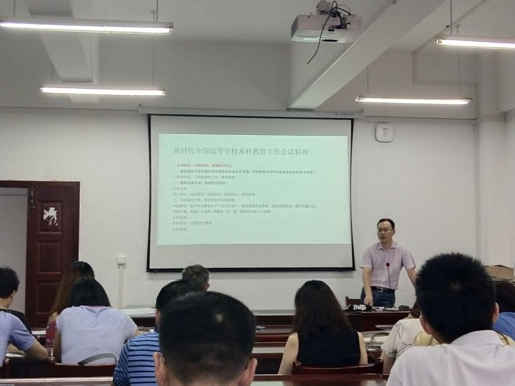 会上,段丁强院长从坚持“以本为本”,推进“四个回归”,加快建设高水平本科教育、全面提高人才培养能力,造就堪当民族复兴大任的时代新人四个方面全面解读了会议精神。他说,人才培养是大学的本质职能,坚持“以本为本”,就是要求我们必须把本科教育放在人才培养的核心地位、教育教学的基础地位、新时代教育发展的前沿地位,全体教师无论职称有多高,必须把教学重心向本科生倾斜。“四个回归”理念,是对不同对象提出了不同的要求,回归常识的对象是学生,回归本分的对象是教师,回归初心的对象是高校,回归梦想的对象是对我们的国家和社会层面。在教育教学工作中,我们要加快建设高水平本科教育、全面提高人才培养能力,学生招进来,我们要负责培育,要对学生四年的就业问题负责,如何负责,就是要全面提升学生本领。最后,他强调,全体教师要以此次会议为契机,不断提升教学本领,为造就堪当民族复兴大任的时代新人奉献自己的一份力量。