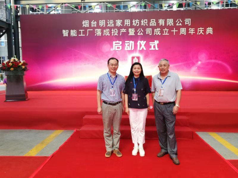 7月21日,太阳集团tyc33455官网段丁强院长和毛长文书记、吴英老师应邀赴校友企业山东烟台明远家纺家用品纺织品有限公司参加公司十周年庆典仪式,并探望学院实习实践学生。双方就进一步推进校企合作,建立我院学生校外实习实训平台,拓展学生专业视野,提高学生专业技能进一步达成合作意向。