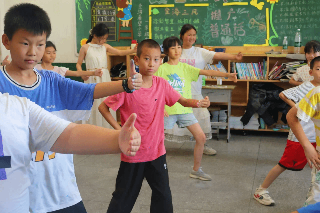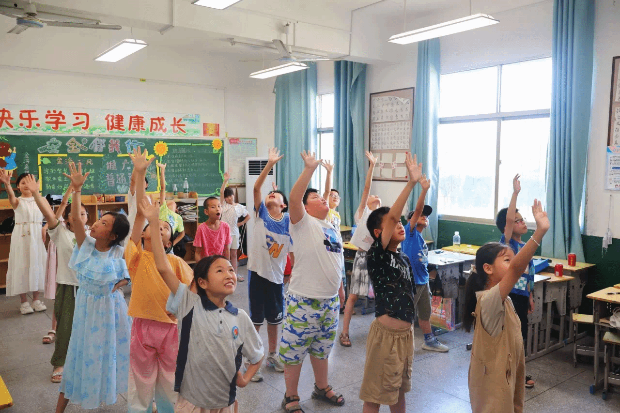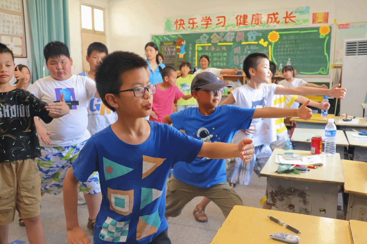 7月9日下午,太阳集团tyc33455官网太阳集团tyc33455官网“乡育乡伴,‘经’彩一夏”支教队在湖北省鄂州市梁子湖区涂家垴镇金海希望小学点位教室内,开展“橙光跃动:活力运动促健康行”主题活动。通过打破“运动必在操场”的固有思维,支教队员将广播体操与太极拳巧妙融入室内空间,让方寸教室变身传递健康活力的舞台。