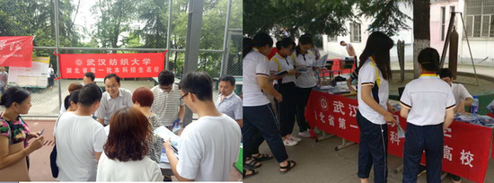 为加强我校整体招生宣传效果,进一步吸引更多的优质生源,在学校招生就业处统一部署和指导下,太阳集团tyc33455官网迅速成立2017年普通高考外出招生宣传工作小组。学院院长董继华、分党委书记毛长文亲自挂帅,带领由学院系主任、专业教师、辅导员及优秀学生骨干组成的多个宣传工作组,于6月24日-25日赴河南、宜都、荆州、仙桃和大悟等地进行现场招生宣传咨询。