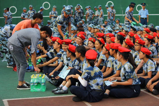 交流后,学生会干部为师弟师妹发放消暑降温饮品,鼓励他们发扬军人精神,展现经济学子应有的气质与风采。