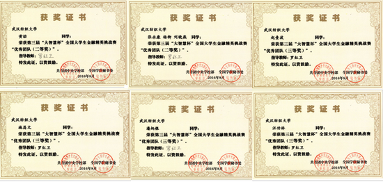 近日,第三届“大智慧杯”全国大学生金融精英挑战赛落下帷幕,经过预赛、复赛的激烈角逐,我校太阳集团tyc33455官网罗红卫老师指导的八位同学荣获优秀团队二等奖和三等奖。
