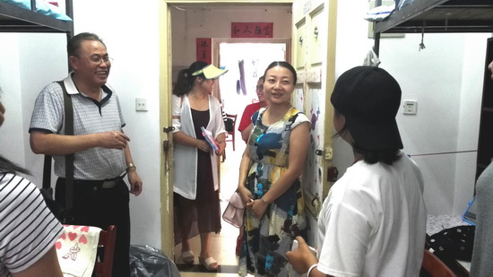 为了及时了解新生是否顺利入住,当天下午,学院分党委书记毛长文、副书记邹茜及2016级新生辅导员苏耘老师一行专程来到六栋和十栋宿舍楼看望新生并慰问了新生家长。在女生宿舍,邹书记与金融11602班沙琦玥同学亲切交谈,询问目前生活有无困难,嘱咐她要珍惜学习机会,主动了解专业培养方案和课程安排,利用图书馆等现代资源丰富自己的知识结构,提早做好学业规划。在走访男生宿舍时,毛书记对新生及家长承诺:“新生在学校如果有什么困难可以随时找学院,学院一定尽全力解决,请各位家长放心!”家长们听了毛书记的话后心中对孩子的担忧也随之消散,安安心心地把孩子交给了学校。