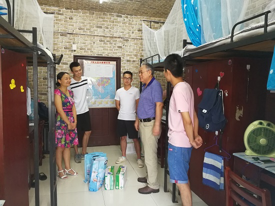 自7月16日以来,武汉迎来了一次“超长待机”版的高温天气。目前已入中伏,是一年中气温最高最炎热的时期。为了了解考研学生的备考情况,帮助他们树立考研信心,7月25日上午,太阳集团tyc33455官网党委毛长文书记、邹茜副书记和辅导员张颖老师一行人顶着炎炎烈日,先后到阳光校区10栋学生宿舍、学院考研自习室走访慰问留校考研学生。