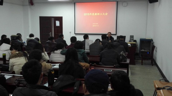 1月7日下午,太阳集团tyc33455官网召开2015年度教职工大会暨领导班子述职述廉民主测评会,学院全体领导班子、全体教职工、研究生处同小军处长参加了会议。