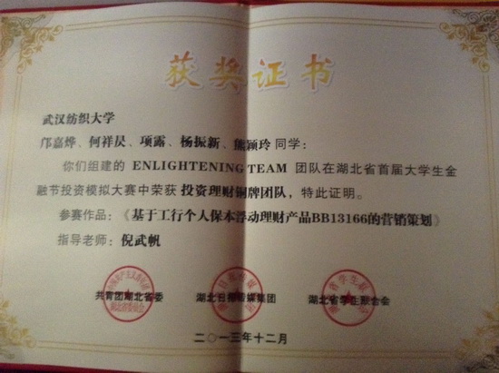 (ENLIGHTENING TEAM队获投资理财铜牌团队)