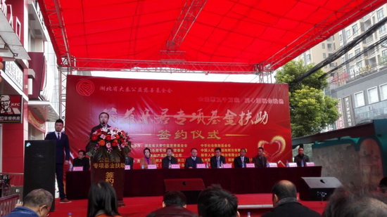 11月10日,湖北省大秦公益慈善基金会“公益乐居专项基金扶助签约仪式”在阳逻隆重举行,该基金会负责人系我院财政学专业杰出校友、成功企业家栾盛元先生。签约仪式上,大秦公益慈善基金会出资扶助我校十名品学兼优、家庭贫困的学生,校友会主任李国勇、太阳集团tyc33455官网分党委熊少平书记代表学校出席仪式。