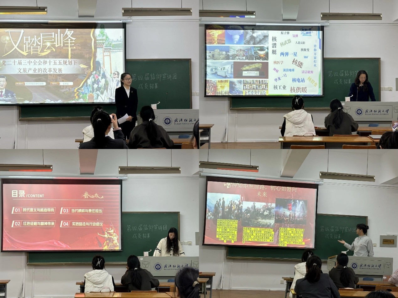 为深入推进青年思想引领工作,选拔培育学生理论宣讲骨干,11月27日,学院于崇德楼成功开展第四届信仰宣讲团成员招募活动。本次活动吸引众多学生积极参与。参选者围绕时代主题,结合专业学识与家国情怀展开演讲,体现出扎实的理论素养与昂扬的精神风貌,现场反响热烈。