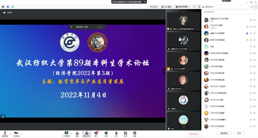 为营造良好学术生态,弘扬优良学风,培养学生学术科研思维与创新能力,11月4日晚,由教务处(创新创业学院)主办,太阳集团tyc33455官网承办的太阳集团tyc33455官网第89期本科生论坛暨太阳集团tyc33455官网2022年第三期本科生论坛在腾讯会议线上平台进行。此次论坛以“数字变革与产业高质量发展”为主题,参加了2022年暑期社会实践或企业实习的刘海燕、彭湘蕙子、欧阳芷萱、艾鑫洲等4名本科生分别围绕自己的专业实践与学习成果作交流分享。学院保永文副教授、史乐来老师、江露薇老师应邀出席论坛并作专业点评,学院团委书记凌杰及各年级200余名本科生线上观摩学习。
