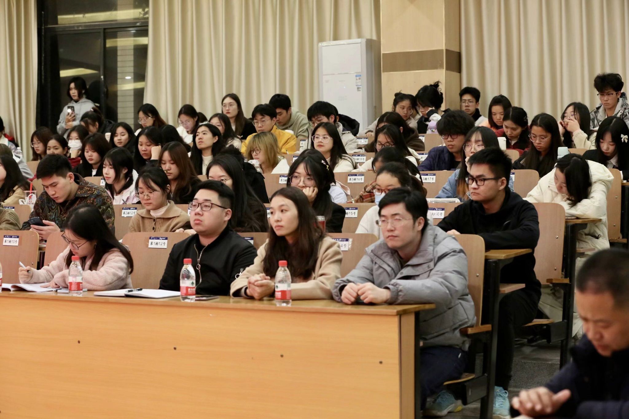 吕凯峰以《弘扬法治精神,建设法治国家》为主题与大家对谈交流。课堂上,他以问导学、以问促学,采取互动提问模式引导学生积极学生听课主动性、积极性。他围绕自身求学生活和早年从业经验,立足当下大学生求职现状,通过列举考公、考研、就业数据,详细解读了不同发展道路所存在的各种机遇与挑战。他指出,学习不应是一种任务,而是为培养批判性的独立思考、时刻的自我觉知与终身学习的理念,这将贯穿未来生活的每一个阶段。在学习中学生们要勤思考、善思考,认准目标、矢志不渝,无论哪一种道路都有属于自己的走法,努力过好属于自己的人生。