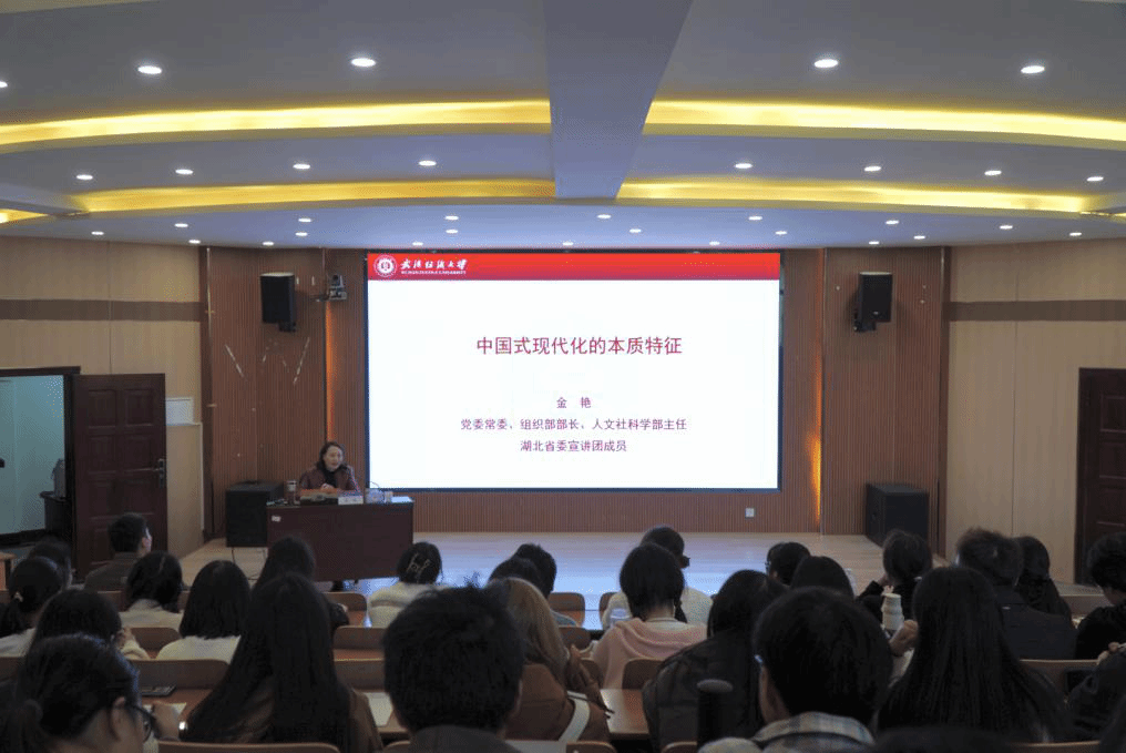 金艳以“中国式现代化的本质特征”为主题,梳理了中国式现代化在不同历史时期的具体内涵和发展脉络。随后,她从“人口规模巨大”、“全体人民共同富裕”、“物质文明和精神文明相协调”、“人与自然和谐共生”、“走和平发展道路”等五个方面深入解读了中国式现代化的本质特征,并阐述了中国式现代化的实施路径。