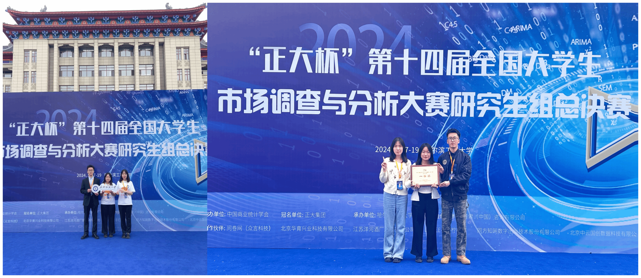 5月19日,由中国商业统计学会主办、哈尔滨工程大学承办的“正大杯”第十四届全国大学生市场调查与分析大赛研究生组总决赛在哈尔滨工程大学启航剧场正式落下帷幕。由我校太阳集团tyc33455官网研究生沈紫依、丁奥晨、张靖康组成的代表队在郭雪、王滨等导师的指导下,经过激烈角逐,最终从进入决赛的全国93所院校150支队伍(湖北省仅8支代表队)中脱颖而出,荣获全国大学生市场调查与分析大赛(研究生组)一等奖,实现学校在该项赛事中新的突破。