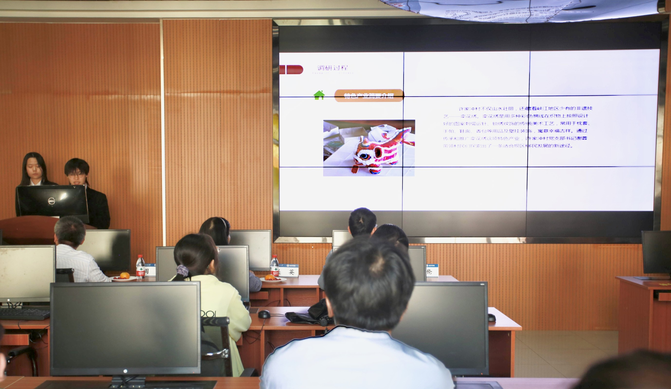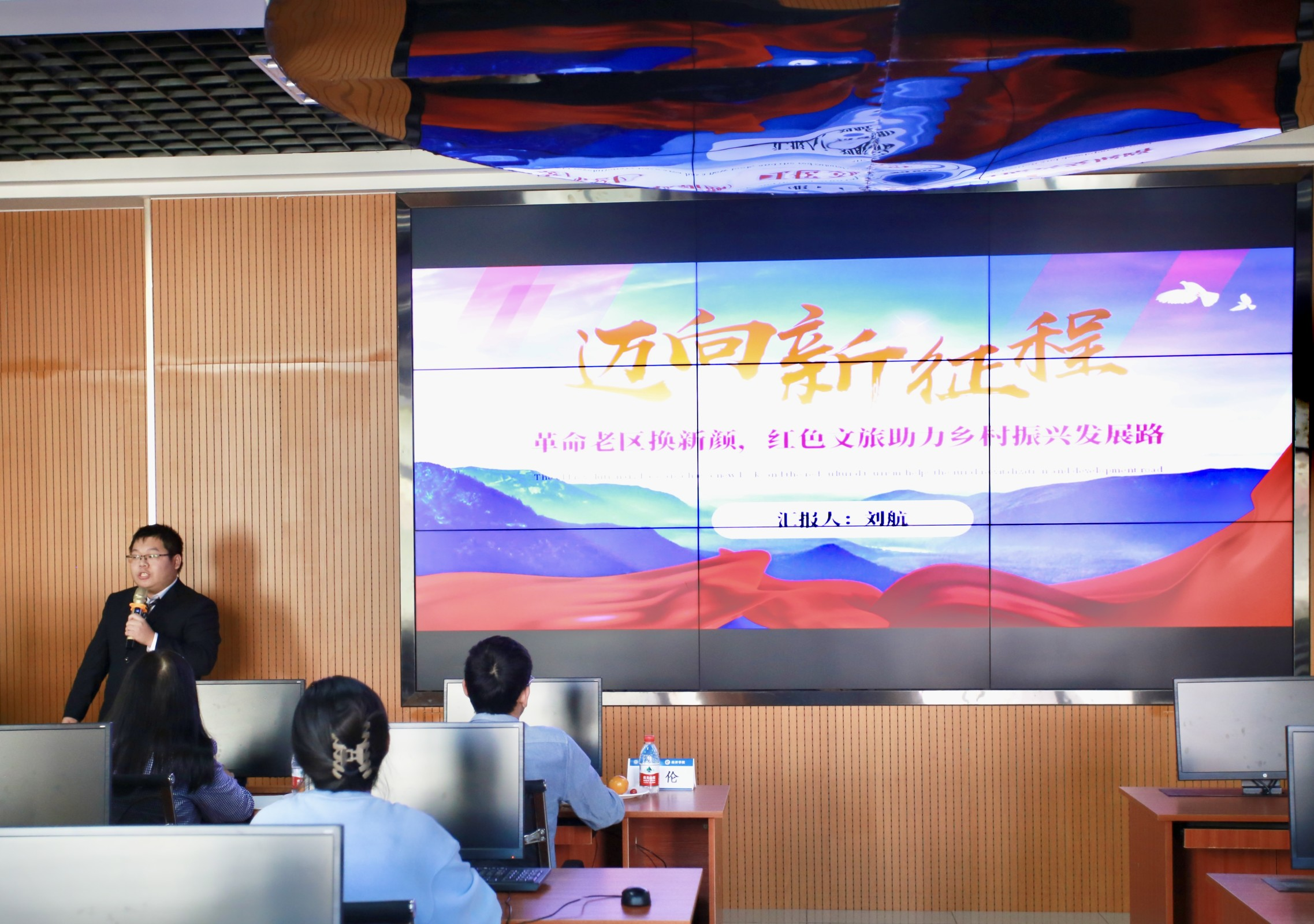 主讲人们围绕“乡村振兴”、“科技赋能”、“红色精神”、“社会保障”等思政课题,从实践地点介绍、实践成果展示、实践心得体会等方面展开,详细介绍了实践中遇到的问题及解决方案,分享了一路以来的心路历程,分析了自身的不足之处。晏雨涵、龚启佳以图文相结合的形式,展现了许家冲村的现有风貌;张梓璇介绍了当地蚕产业的发展现状以及生存困境;陈文慧结合时代问题,带领大学生们感受红色革命精神;桑宇清指出了产业融合项目的发展状况和前景;喻洲林展示了农村三产融合模式的发展现状……随后,评委老师对各团队的汇报进行点评,并表示充分的肯定。财税系主任周靖指出,有些团队在主题命名方面略显广泛,但总体上各团队的报告逻辑清晰、论证严密。其中,国贸12201陈文慧、财政12101袁清霞、税收12101刘航、税收12101喻洲林四位同学成功晋级。