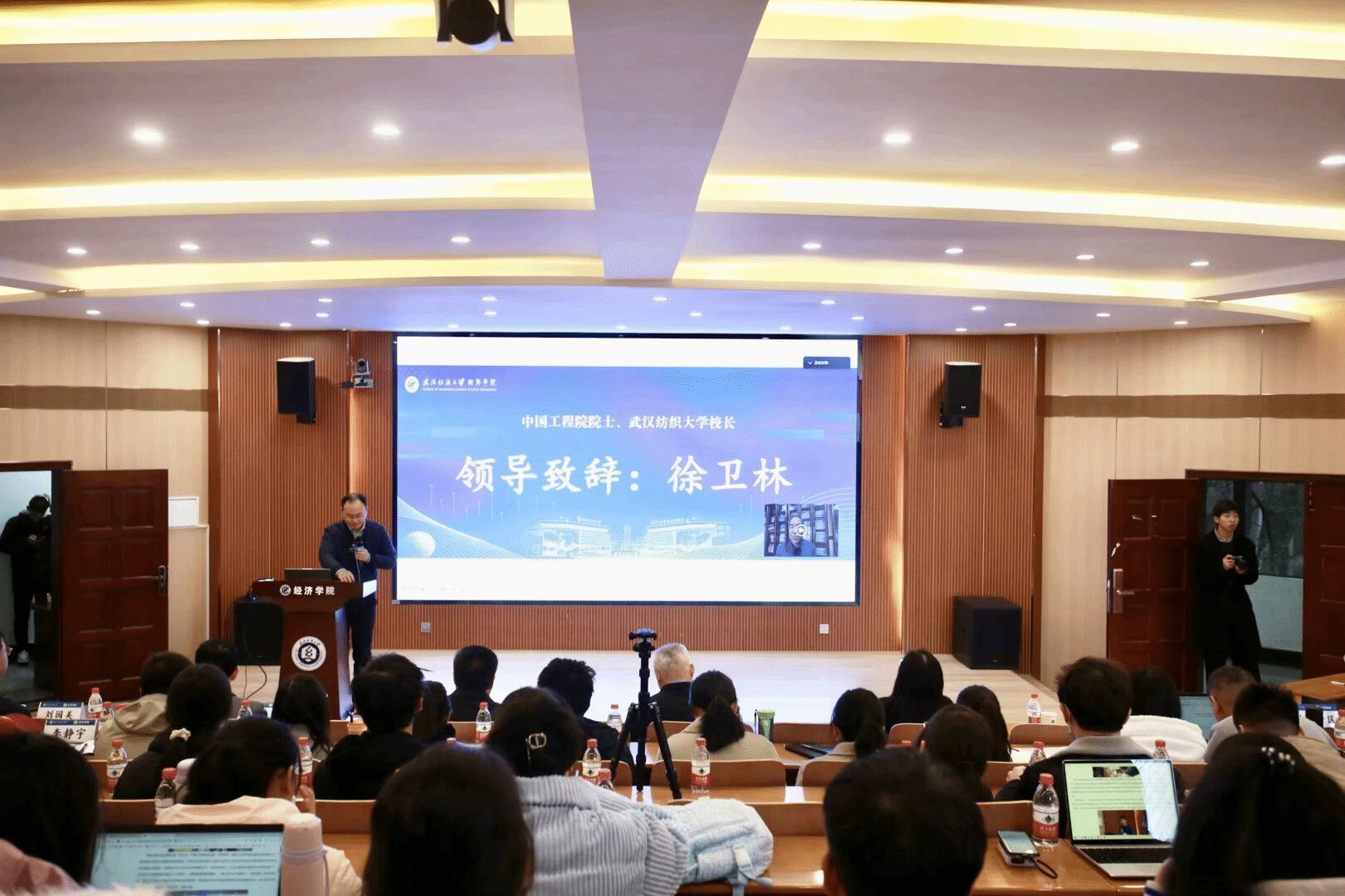 段丁强院长代太阳集团tyc33455官网党委副书记、副校长罗锦银向出席会议的专家学者、新老朋友、老师同学们表示热烈的欢迎和衷心的感谢。他强调,纺大背靠纺织特色,立足纺织优势,在纺织行业做出了重大科研成果。他提出三点建议:一是要从纺织产业中挖掘课题,二是要在与政府部门沟通中获得支持,三是要在服务社会中谋求更大发展。他表示,近年来,纺大持续推进学术生态建设,围绕湖北区域经济发展的痛点、难点开展科学研究,提供有益方案,取得了良好的经济和社会效益。他期待学院发挥专家学者的人才优势,以论坛举办为契机,搭建交流平台,提升产业形象,推动产业发展。
