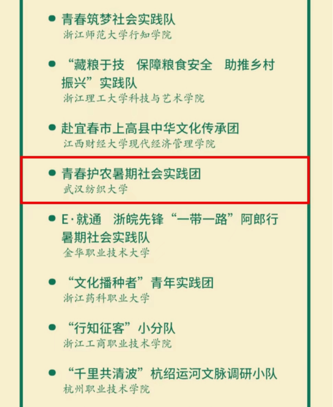 为深入学习宣传贯彻习近平新时代中国特色社会主义思想和党的二十大精神,深入了解新质生产力赋能农业生态产品价值实现的理论机制和作用机制,用脚步丈量祖国大地,让青春在社会实践中熠熠生辉,近日,由团中央主办、共青团新疆维吾尔自治区委员会承办专项活动2024年全国大学生暑期文化科技卫生“三下乡”社会实践活动“铸牢中华民族共同体意识——‘石榴籽祖国行’”新疆专项实践活动和潮新闻(浙江日报)主办的2024大学生暑期社会实践优秀案例征集活动陆续公布了立项名单,我院“青春护农”暑期社会实践团队分别入选。