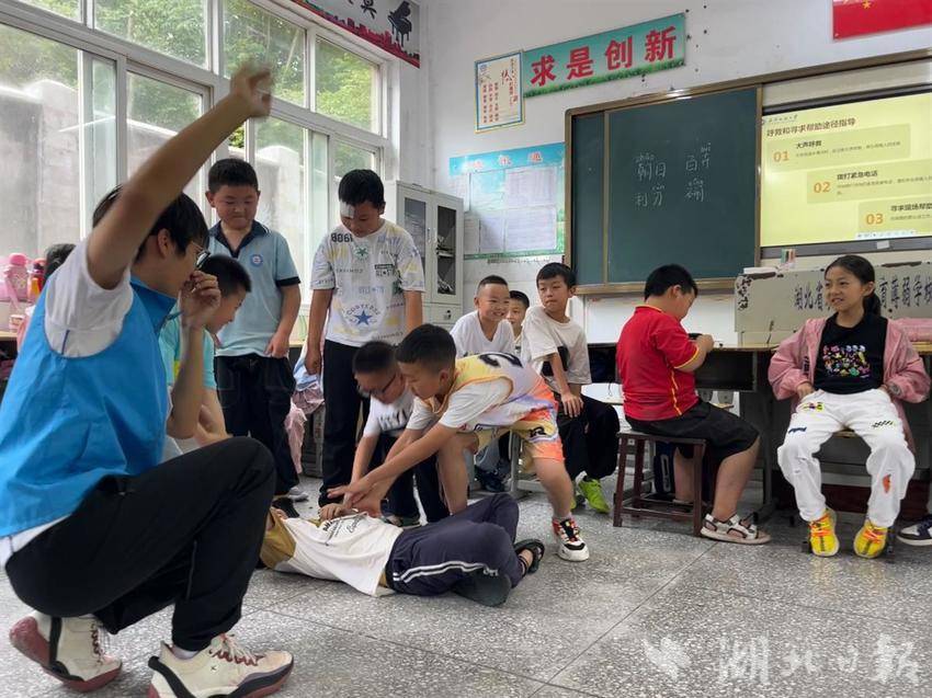学生小明在湖岸边行走时不慎落水,小阳发现后迅速呼救,医生、家长迅速往湖边赶来……日前,在恩施州建始县茅田镇茅田小学,一出防溺水安全教育情景剧《救救小明同学》火热上演。