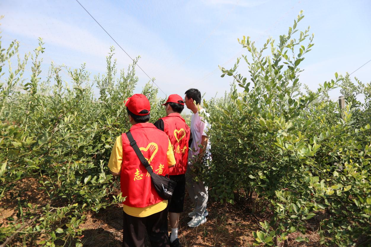 在相关负责人员的带领下,实践队员深入了解蓝莓产业的发展情况并与当地种植户进行了沟通与交流,学习种植与采摘过程中的细节与难点、蓝莓的生长周期以及蓝莓的保藏工序。蓝莓基地作为乡村振兴的重要组成部分,在促进当地就业、推动乡村经济发展以及改善生态环境方面发挥了积极的作用。