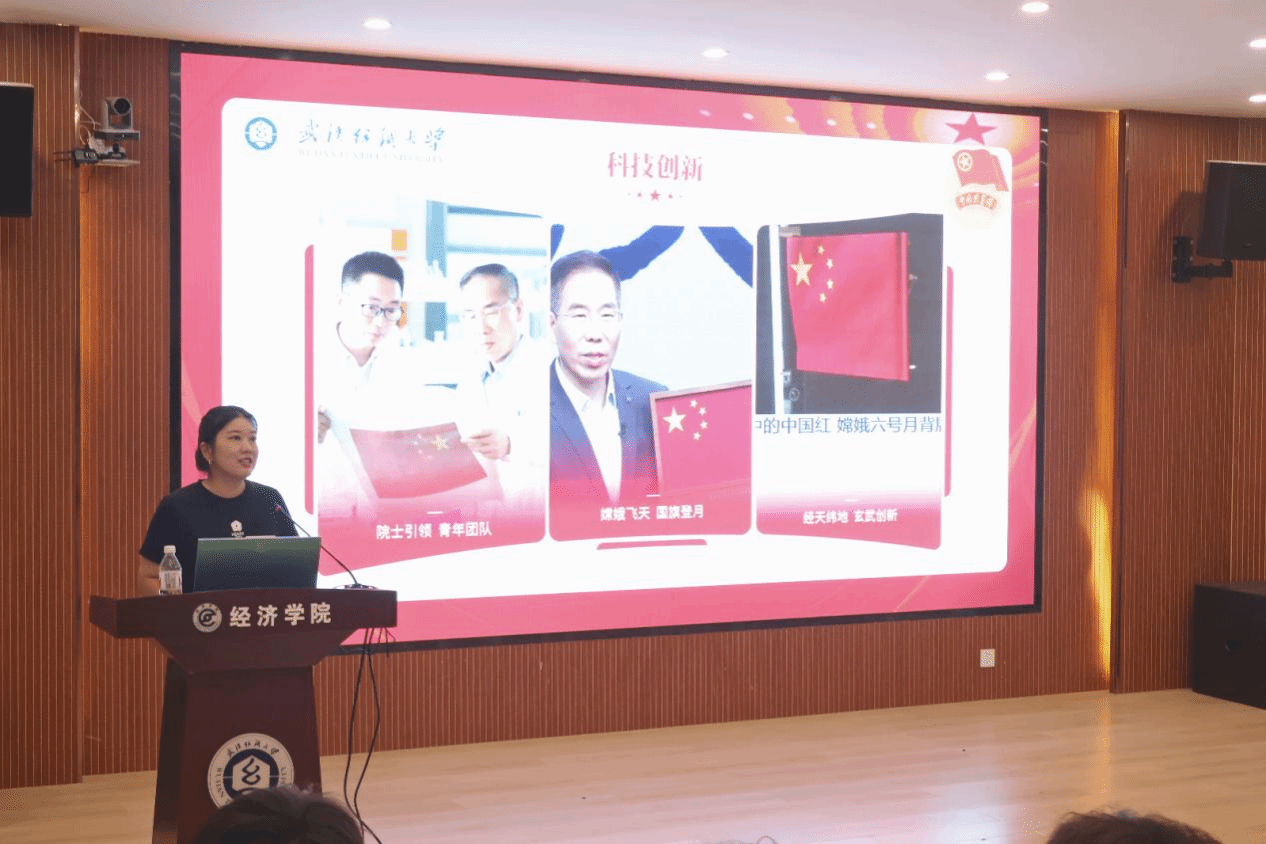 张玲以“学团史,明担当”为主题,围绕中国共青团简史、湖北青年运动史和新时代挺膺担当三个部分展开讲授。她从中国共产主义青年团的组织性质、诞生历程以及象征标志等维度切入,向同学们讲解了湖北青年的革命事件,阐述了共青团精神的核心要义,引领同学们继承先辈精神,坚定理想信念,不断汲取前进的力量,创造属于新时代青年的荣光。在团课的最后,通过介绍各领域的“排头兵”和“生力军”,她强调,学生应发扬五四精神,厚植爱国情怀,坚定不移听党话、跟党走,肩负起时代的重任,将小我融入祖国的大我、人民的大我之中,为新时代中国特色社会主义伟大事业贡献青春力量。