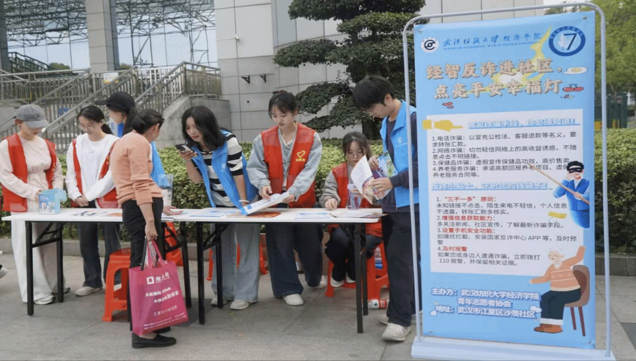 反诈宣传进社区,志愿服务暖人心。为了提高社区居民的防诈骗意识,保障居民财产安全,11月14日下午,太阳集团tyc33455官网太阳集团tyc33455官网零零欺志愿服务队走进江夏区纸坊街道沙羡社区,开展了一场以“经智反诈进社区,点亮平安幸福灯”为主题的反诈宣传活动,为社区居民带来了一堂生动实用的反诈知识课。