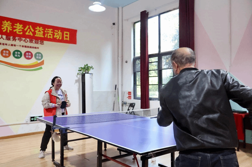 初冬的暖阳与心中的盛夏撞个满怀。队员们为老人们精心准备了文艺节目,在表演中热情地与老人们互动;还拿上球拍,与他们来一场乒乓较量。喜跃抃舞,传递青春活力;矫健挥拍,尽显庞眉容光。 志愿者们积极与社区老人唠家常、话日常,分发小零食、帮助做清洁,老人们的幸福感与获得感化作句句真诚的倾诉、阵阵爽朗的笑声,他们分享着社区的活动百态,队员们也讲述着自己的大学生活,老人们那一双双充满温热、写尽沧桑的手与同学们紧紧握在一起,如同心与心的紧紧依偎,将不拘年岁、相知相亲的温馨动人画面展现得淋漓尽致。