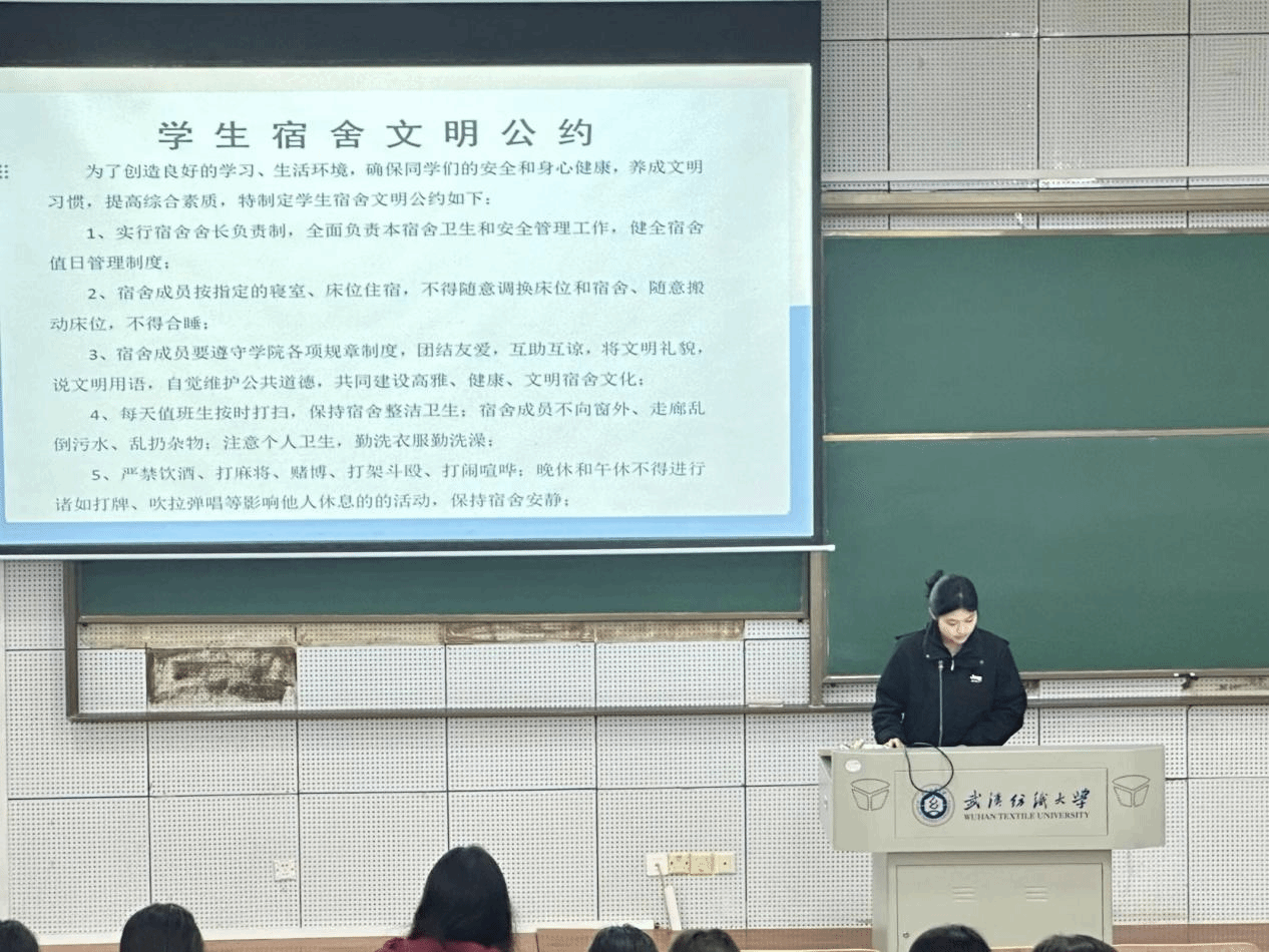 17日下午,成长服务部成员于崇德楼T302报告厅举办寝室文明宣讲会,学院23级全体学生参加。宣讲员结合校园内的实际案例,生动形象地介绍了宿舍文明公约、安全隐患以及宿舍不文明行为的综合测评相关规定。同时,还重申了院公检的相关标准和检查要求,使学生们对宿舍文明建设有了更加全面深入的了解。