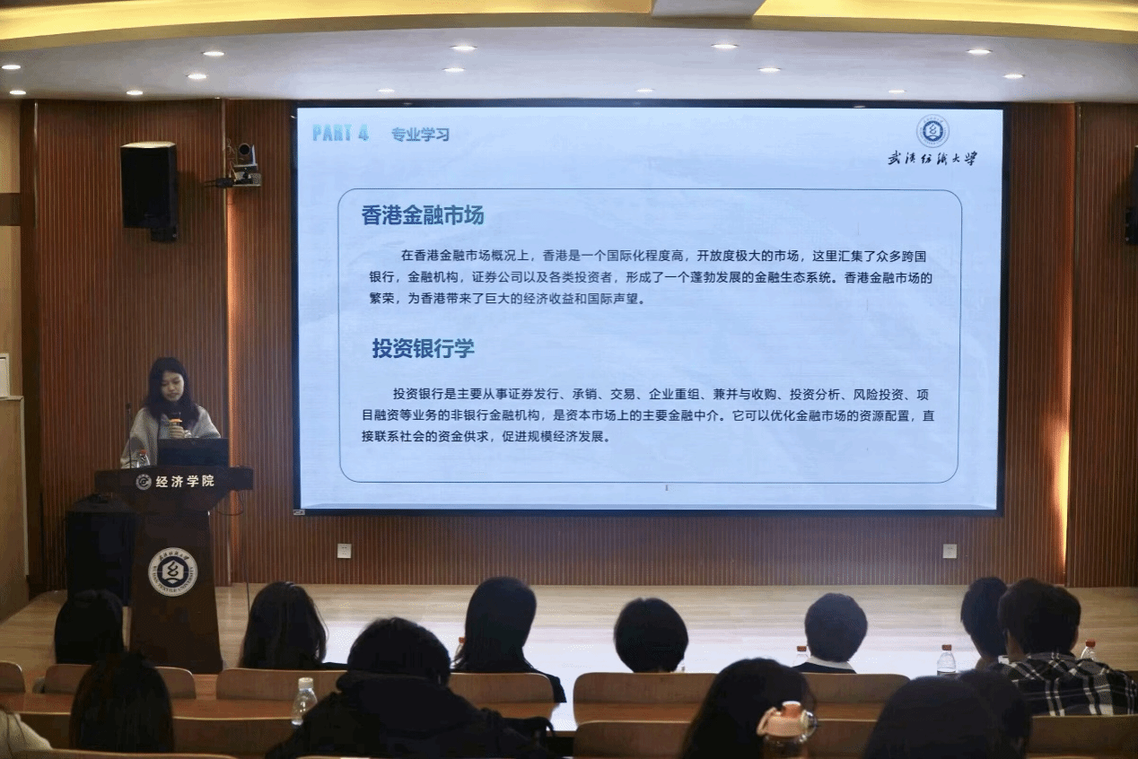 为帮助学院学子更多地了解香港留学优势,打破信息壁垒,4月11日,学院于崇德楼T301报告厅举办香港留学工作分享讲座。本次活动邀请Adamas财富管理公司总监王一俊,香港财富管理资深专家林咏诗、霍灵、陈羽等人进行讲解交流,及学院2023暑期香港研学团队成员王典、冯元宜作经验分享。