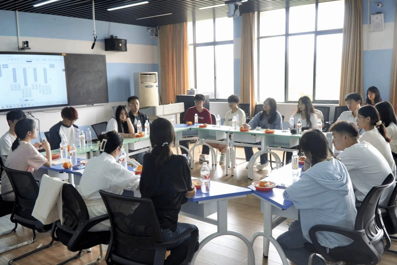 在共进午餐稍事休息后,发展联络部成员带领外访人员移步崇德楼305会议室,彼此交流工作经验。会上,双方人员围绕学生会工作机制与流程、学生会特色活动、工作的心得体会等进行深入交流。两部门之间积极讨论,畅所欲言,表示要互鉴互融,共同发展。在交流期间,为增进双方友谊,双方人员进行了自我介绍及一系列小游戏,现场氛围热闹而温馨。活动最后,两院学生会成员合影留念并互赠礼品。