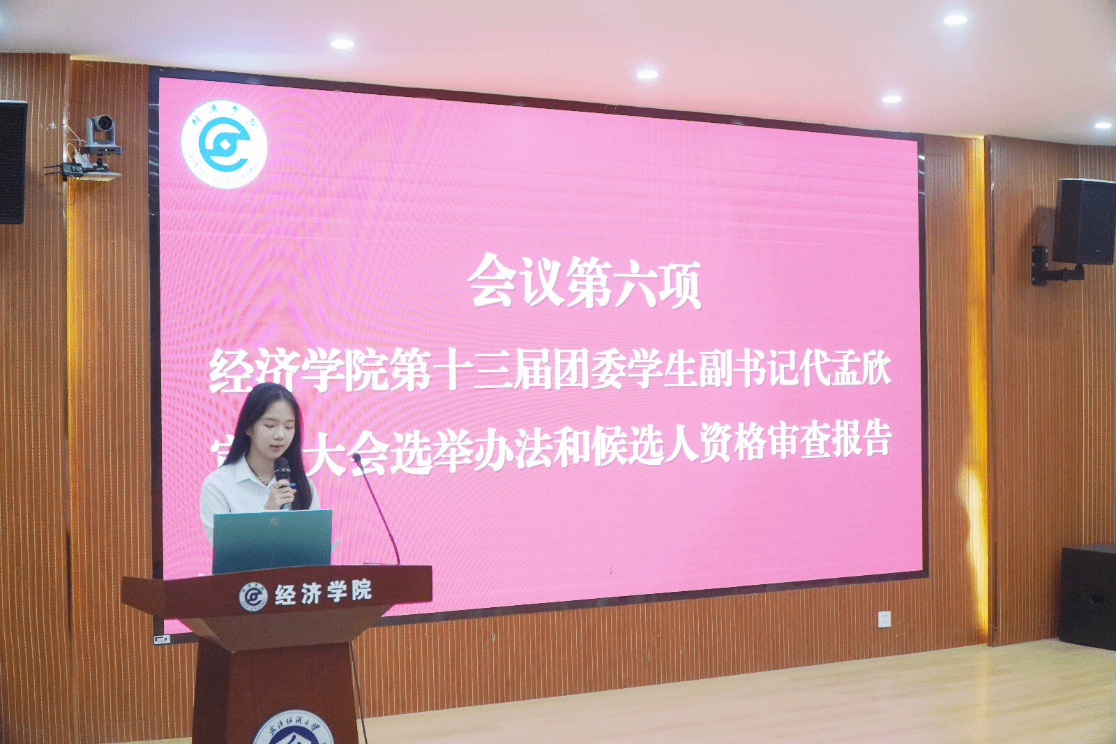 会上,学院第十三届学生会执行主席曾诗玥向大会做工作报告,她回顾过去一年的学生工作,指出学院坚持以加强政治引领为根本,积极开展思政教育;贯彻落实组织内部改革和运行机制,践行全心全意服务的宗旨;着力营造浓厚文化氛围,丰富校园生活。展望未来,她认为学院学生工作将继续聚焦政治引领,广泛听取学生意见,努力创新平台建设。第十三届团委学生副书记代孟欣宣读大会选举办法和候选人资格审查报告。随后,十位候选人依次进行竞职演讲,通过差额选举方式,由在场学生进行不记名投票,选举新一届团委、学生会主席团成员。